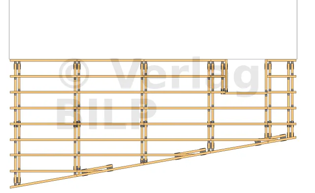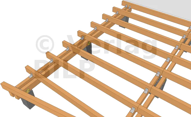 Zum anderen werden sie an den Unterzugbalken mit Rillennägel oder Gewindestangen befestigt, die mit Muttern und Unterlegscheiben angezogen werden.