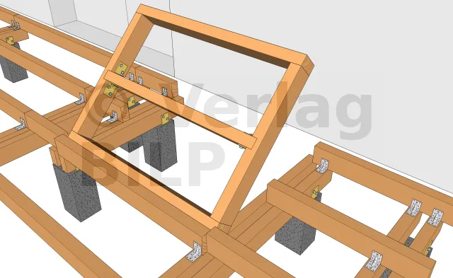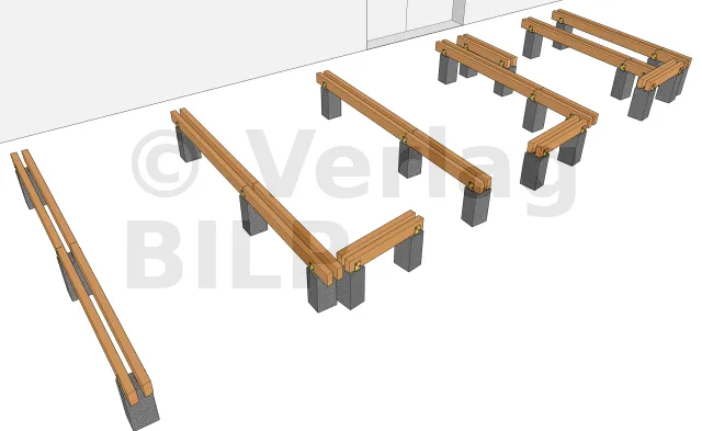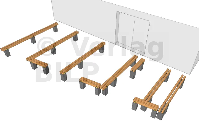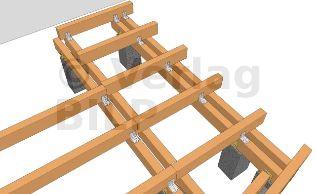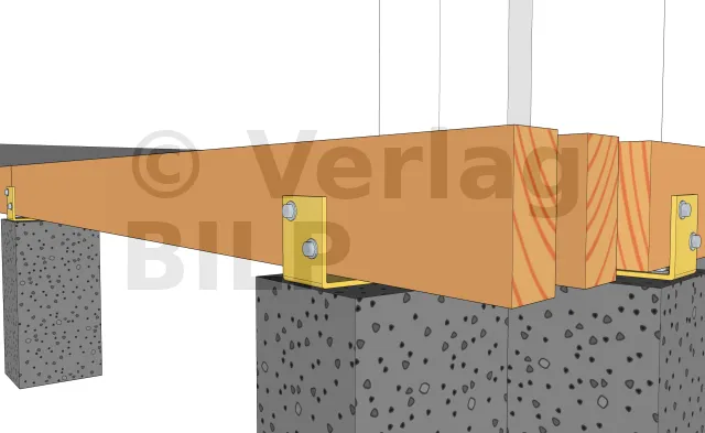 Für die Befestigung der Unterzugbalken an den Betonsockel sind mehrere Methoden und Techniken möglich.