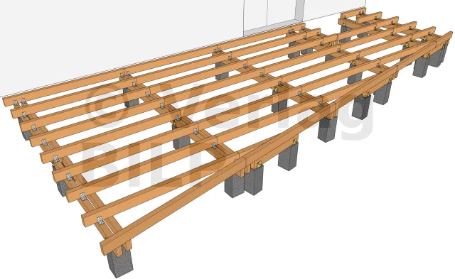 Für die Berechnung sind zwei Methoden möglich: entweder durch Auferlegung des Querschnitts und der Spannweite der Balken oder entsprechend den Merkmalen der Terrassendielen.
